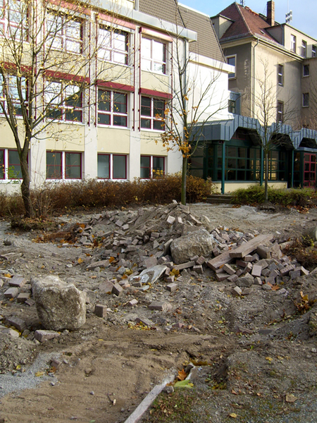 Die ersten Bagger sind schon da und das alte Hausmeisterhaus ist schon abgerissen und macht Platz für den Neubau.
