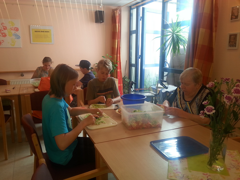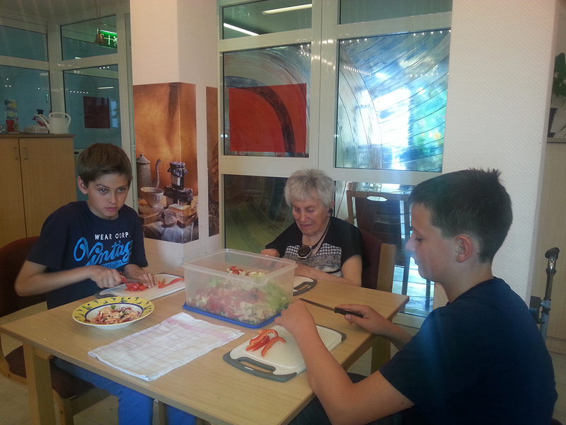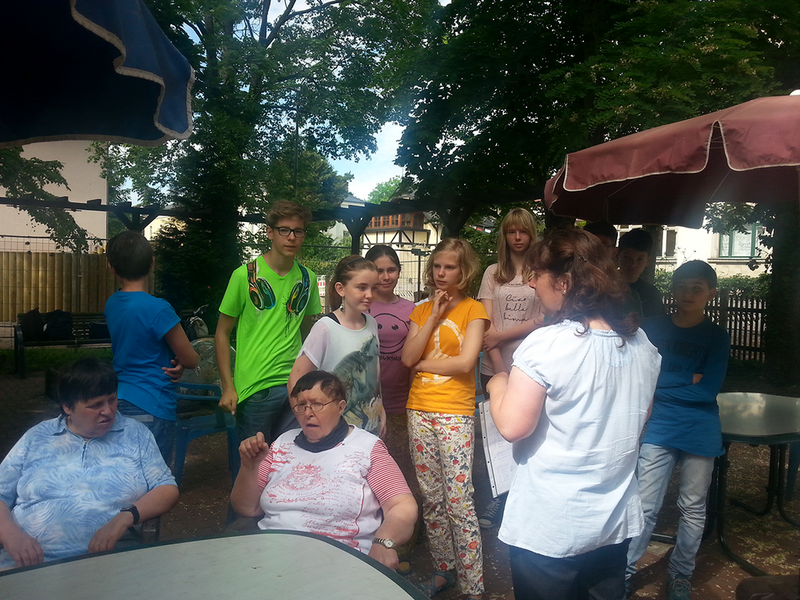 Am 3.6.2015 war die Klasse 6b im Mätzholdheim in Dresden. Wir lernten mit behinderten Menschen umzugehen und keine Scheu mehr zu zeigen. Unsere Klasse hat gesehen wie die behinderten Menschen leben, wie sie versorgt und gepflegt werden. Außerdem haben wir mit ihnen Salat gemacht. Auf Grund des schönen Wetters konnten wir im Freien Memory oder Mensch ärger dich nicht spielen.
