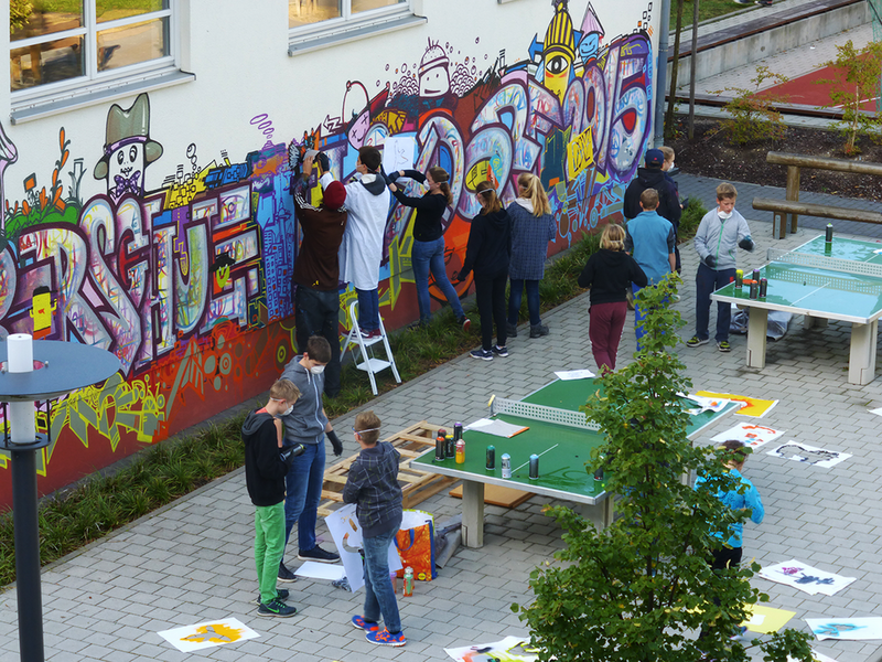 Die heutige Klasse 8b (damals 7b) hatte sich erfolgreich am Wettbewerb „Be smart – don’t start“ beteiligt und als Preis eine Graffiti-Work-Shop mit zwei echten Street-Art-Künstlern gewonnen. Am 1. und 2.10. war es so weit. Und es war echt cool !!!