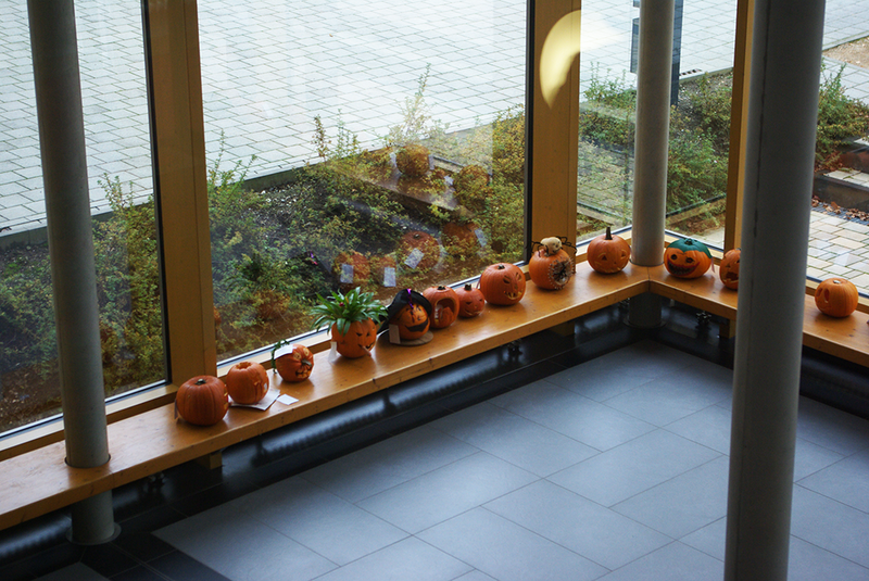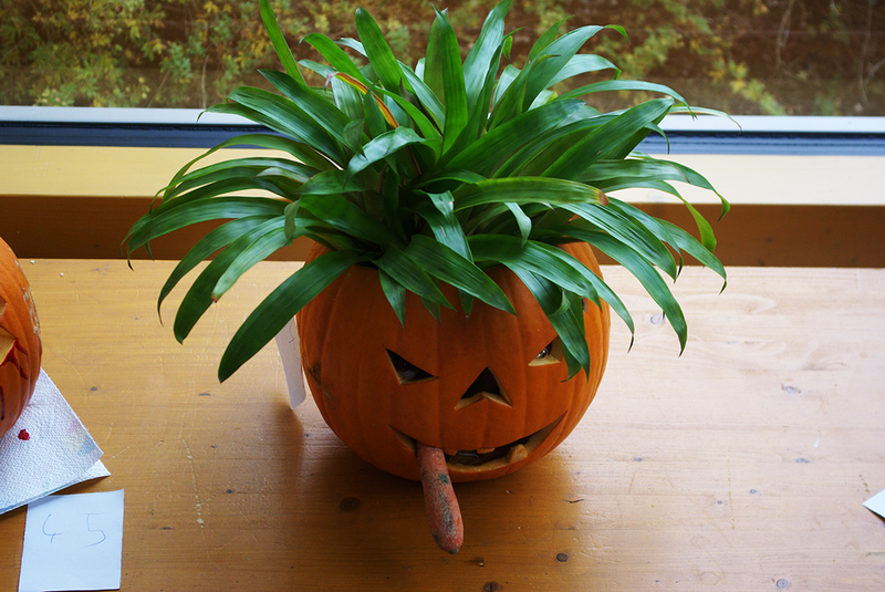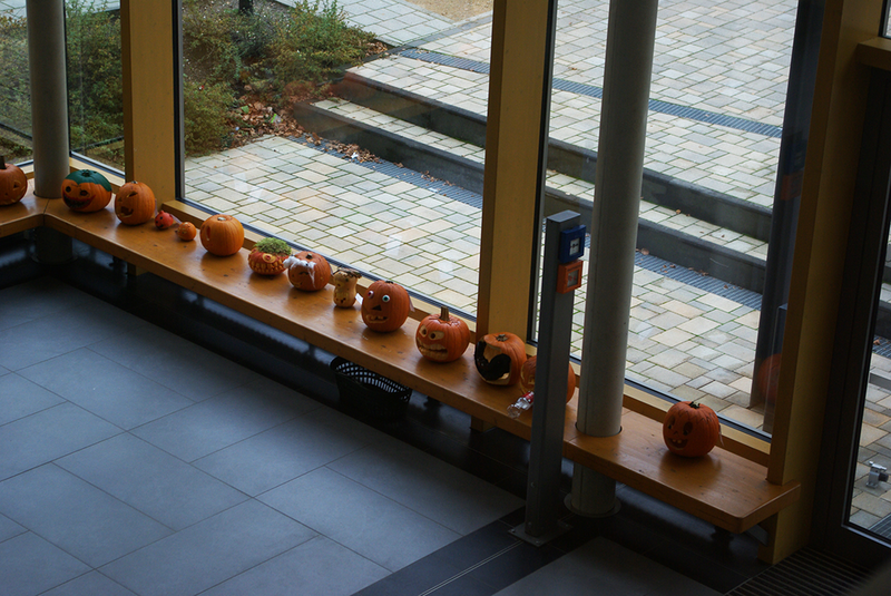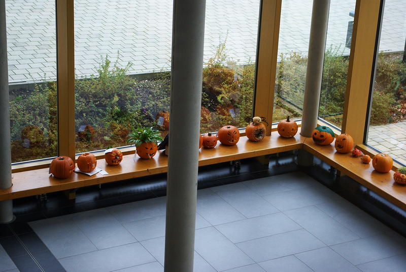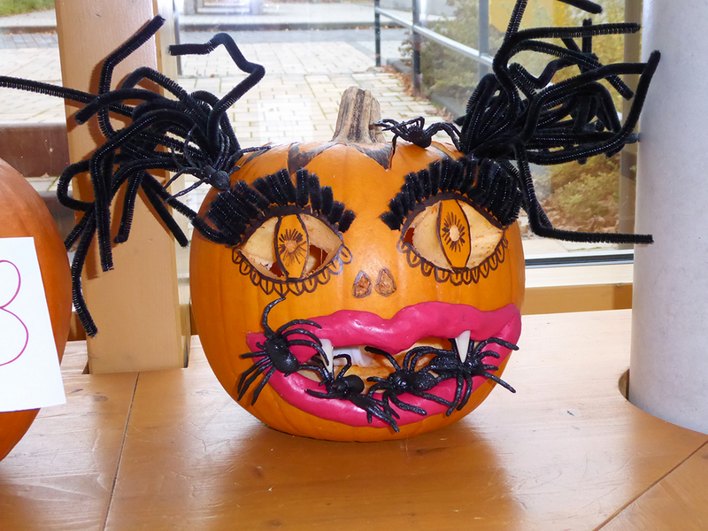 Die Siegerehrung des Kürbiswettbewerbs. Hier durfte jeder Schüler einen Kürbis gestalten und einer Jury, bestehend aus einigen Lehrern, Schülern und Frau Schmutzler, die schwere Aufgabe erteilen, den schönsten von allen auszuwählen.
