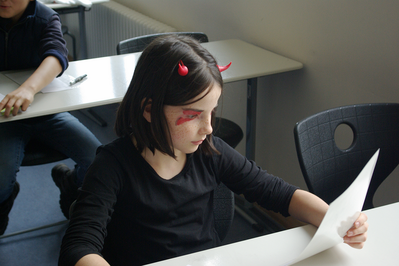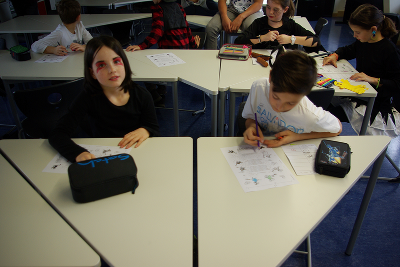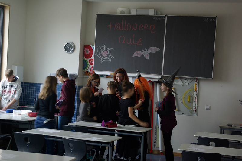Auch kam der Denksport an diesem Tag nicht zu kurz. Beim Quiz brauchten die Schüler vor allem gute Augen, als es darum ging, alle Unterschiede in zwei Bildern möglichst schnell zu finden. Auch für alle Musik-Fans unter den Schülern war etwas dabei. Beim Halloween-Rap wurde gesungen, gelacht und ganz nebenbei der Englisch-Wortschatz erweitert, da der Text in eben genau dieser Sprache geschrieben war. Anfangs ist es gar nicht so leicht, einen unbekannten Text in einer fremden Sprache zu singen, aber mit der Zeit wurde es immer besser.