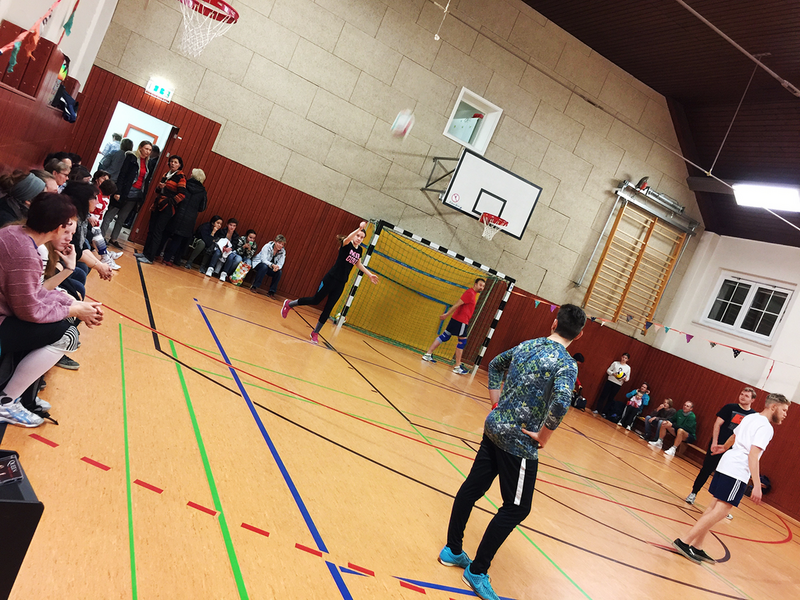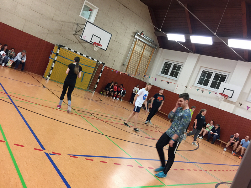 Im ersten Halbfinale wartete auf das Lehrerteam das Duell mit den Promis. Wer auf ein spannendes Spiel gehofft hatte wurde nicht enttäuscht. Nachdem es zunächst nach einem überraschend deutlichen Sieg für unsere Lehrer aussah, bliesen die Promis zur Aufholjagd. 14:14 stand es vor dem letzten Aufschlag. Mit einem mustergültigen Angriff machten die Lehrer den entscheidenden Punkt und somit das Finale klar. Der Jubel kannte keine Grenzen! Das zweite Halbfinale war dagegen eine klare Angelegenheit für die Eltern, welche FM 2 mit 15:7 keine Chance ließen.