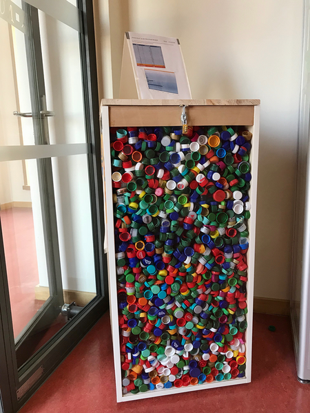 - jeden Mittwoch kommt ein Schüler der Klasse mit den gezählten Deckeln ins Erdgeschoss zu Frau Kutzner
