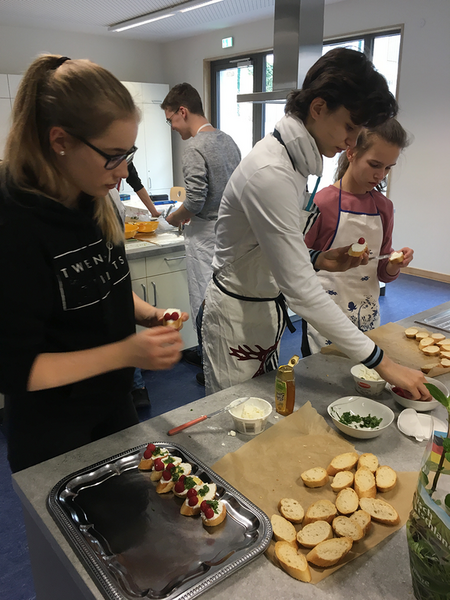 Für kulinarische Köstlichkeiten sorgten die 8 a, die während des WTH-Unterrichts für den Schlemmertempel eine Bruschetta-Bar und diverse andere Leckereien herstellte.