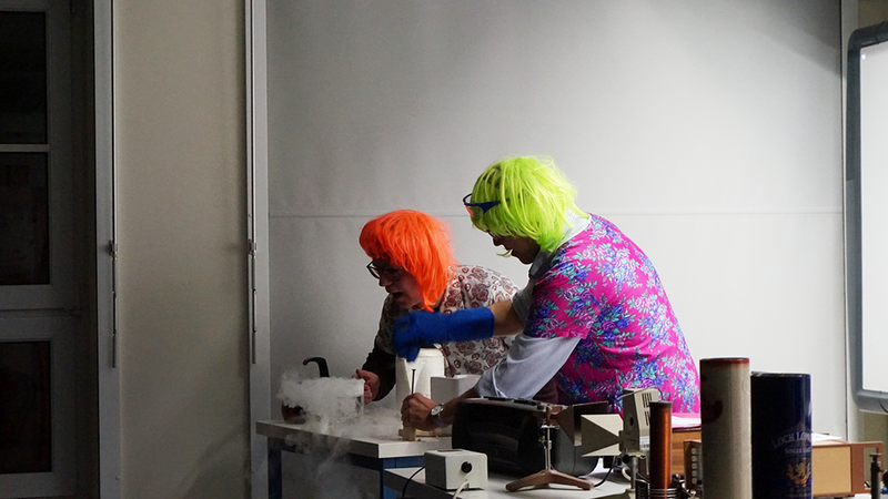 Neben dem Bühnenprogramm dar ein weiteres Highlight nicht vergessen werden: die nun schon legendäre Physikschauvorlesung, die mittlerweile zur Tradition beim „Tag der Begegnung“ gehört.