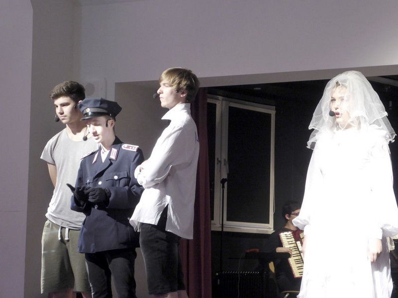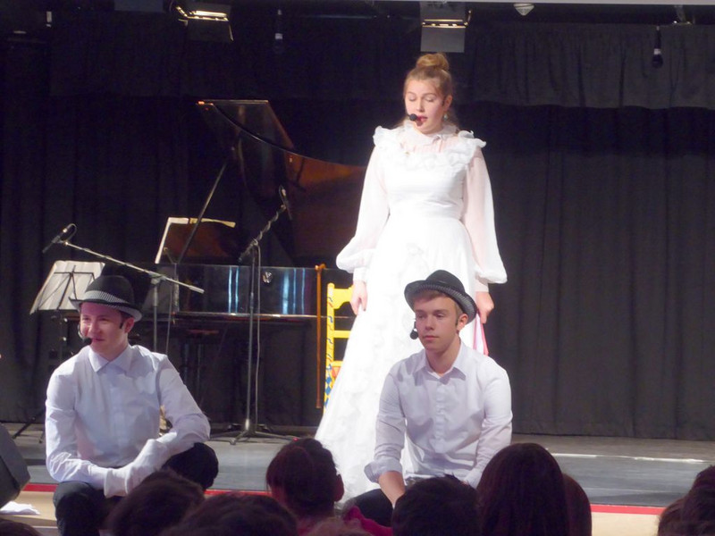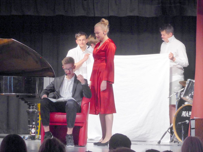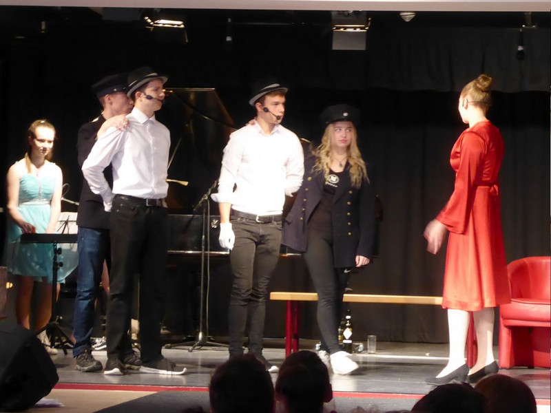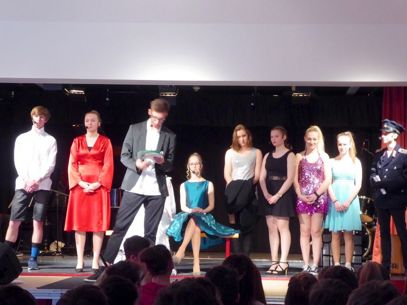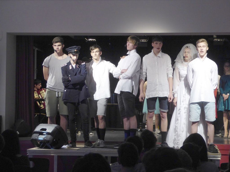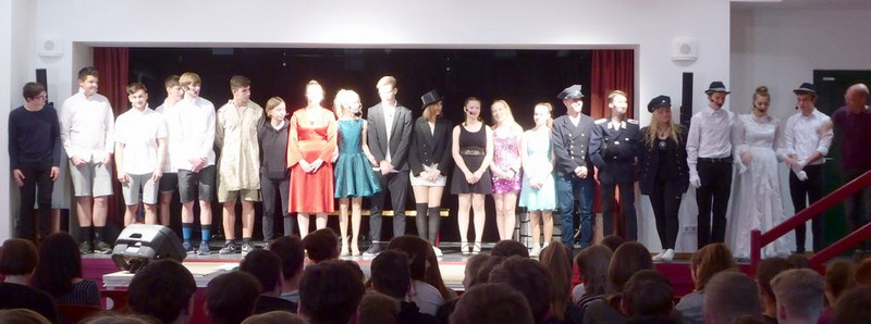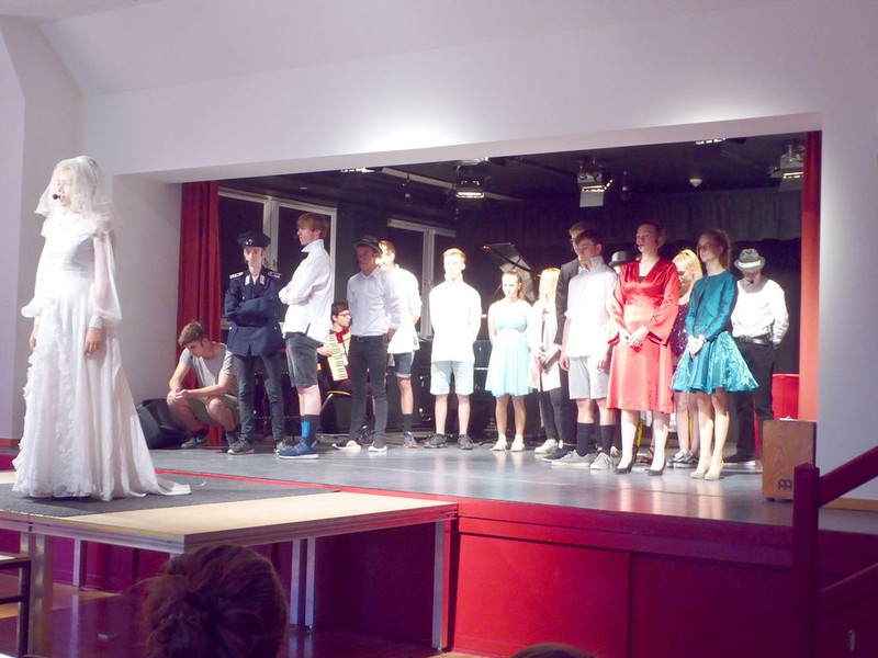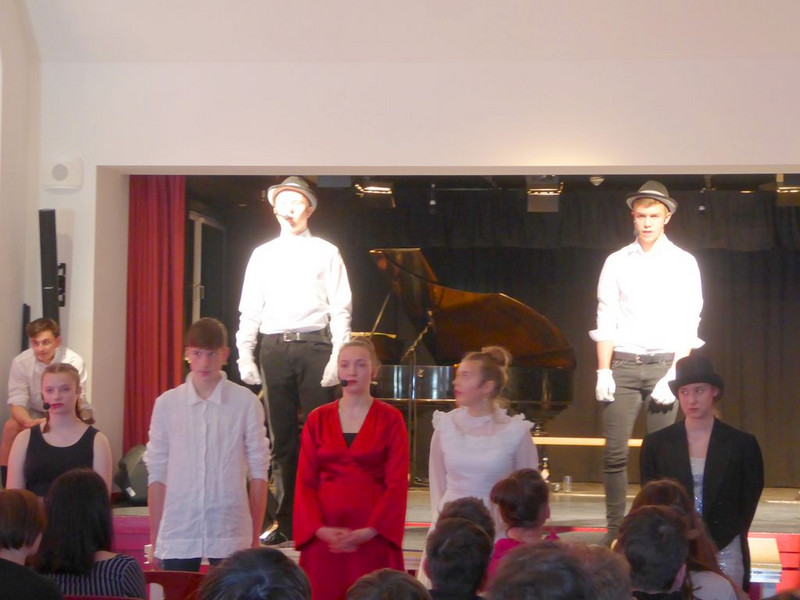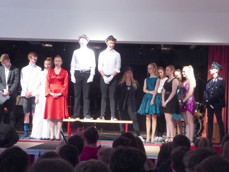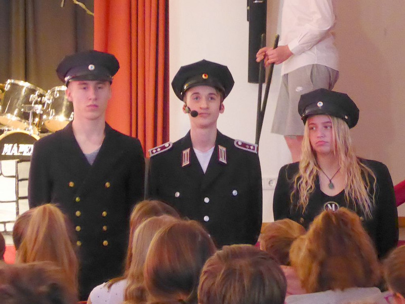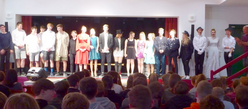 Hut ab und Gratulation zum gelungenen Musiktheaterprojekt der 10. Klassen, das einen Tag später alle 8.-10. Klassen im Saal der Schulaula sahen. Beifall für die Spielfreude, die Musik und ein Dankeschön an die Spielleitung.