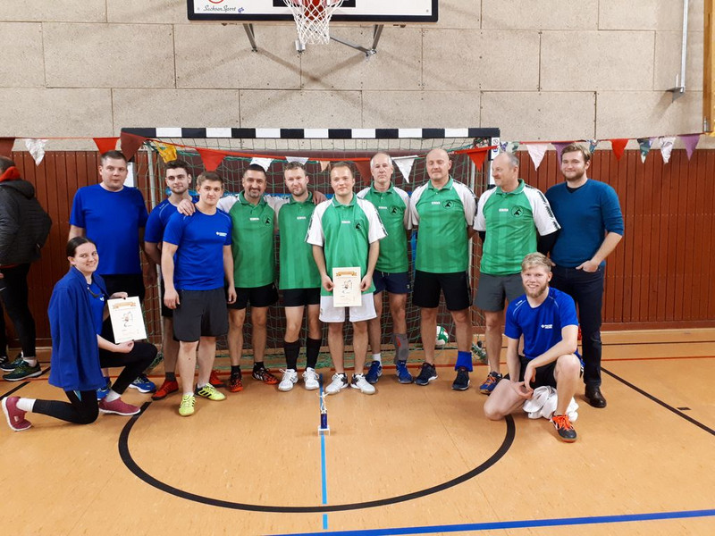 Nach Auslosung der beiden 4er Gruppen konnte das Turnier endlich starten und wartete mit einigen Überraschungen auf. Nach einer über weite Strecken hochklassigen Vorrunde wurde es in den Platzierungsspielen nochmal richtig spannend. In diesen belegten die „Promis“ als Titelverteidiger leider nur den achten Platz. Diesen verpasste ihnen die Schülermannschaft mit ihrem Sieg im Spiel um Platz sieben, womit der Tag für die Schüler der 10. Klasse versöhnlich endete. Die Eltern-Auswahl, letztjähriger Finalist und traditionell einer der Turnierfavoriten, konnte sich über einen deutlichen Sieg in ihrem Platzierungsspiel gegen Federal Mogul 1 und damit Platz fünf freuen. Positiv überraschen konnte das Team des Bülow Palais. Nach letztjährigen Enttäuschungen stießen sie diesmal bis ins Halbfinale vor, in welchem sie knapp unterlagen. Schließlich sicherten sie sich im anschließenden Spiel um Platz 3 den verdienten Sprung auf das „Treppchen“. Diesen verpassten die „Ehemaligen“ wie im Vorjahr knapp. Im abschließenden Finale kam es zum Aufeinandertreffen der zweiten Mannschaft von Federal Mogul und den Lehrern. Das „FM-Team“, welches sich über das gesamte Turnier sehr souverän und abgezockt präsentierte, lies den Lehrern im Finale keine Chance und konnte unter dem großen Applaus aller Anwesenden den Siegerpokal in die Höhe strecken. Doch auch die Lehrer konnten stolz auf ihren gelungen Auftritt (Steigerung von Platz sechs aus dem Vorjahr) sein und das mal wieder gelungene Turnier mit einem Plausch am gemütlichen Feuer ausklingen lassen.