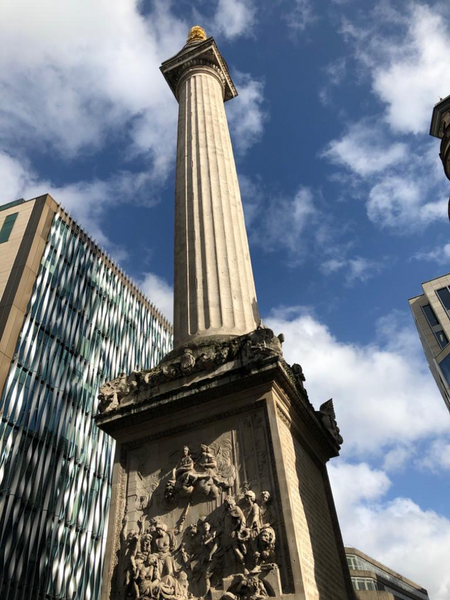In luftiger Höhe in London mit einem schönen Ausblick auf „The Monument” …