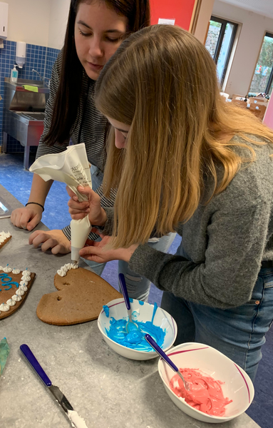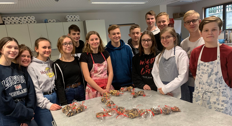 Manche achten und neunten Klassen backten darüber hinaus auch Lebkuchenherzen. Dabei wurde das eine oder andere Talent für eine eventuelle Berufsausbildung zum/r Bäcker/in oder zum/r Konditor/in entdeckt. Toll!
