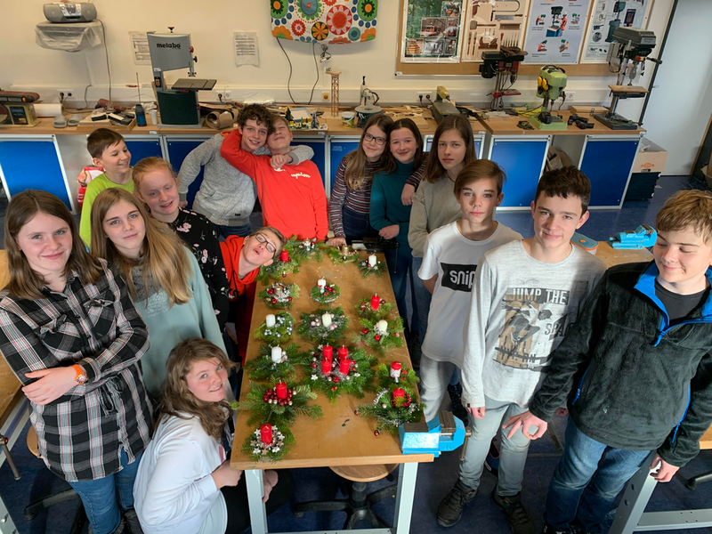 Im WTH Unterricht haben die Schülerinnen und Schüler der siebten und achten Klassen Gestecke gebastelt. Dabei haben sie einen kleinen Einblick in die Tätigkeit einer/s Florist/in erhalten.
