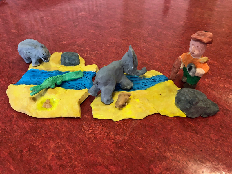 Im 16. Türchen des Adventskalender erfreuen uns zwei Plastiken. Die erste ist eine Gemeinschaftsarbeit von Niklas und Louis aus der Klassenstufe 6. Die kleinen Modellierer versuchten sich an einer Tierszene. Der Versuch ist toll gelungen - oder ?