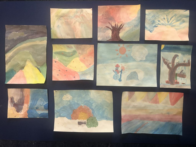 Heute winterliche Pastellbilder aus der Klasse 5a.