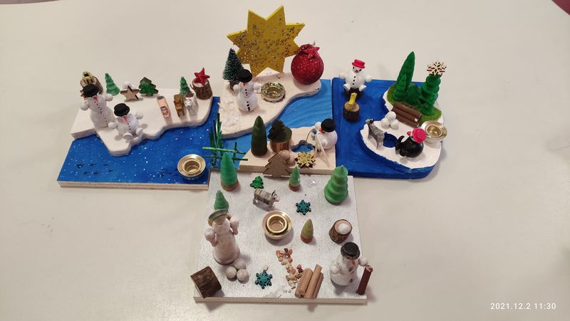 Die 6. Klassen haben das Räucherhäuschen konstruiert und die 5. Klassen einen Kerzenständer.