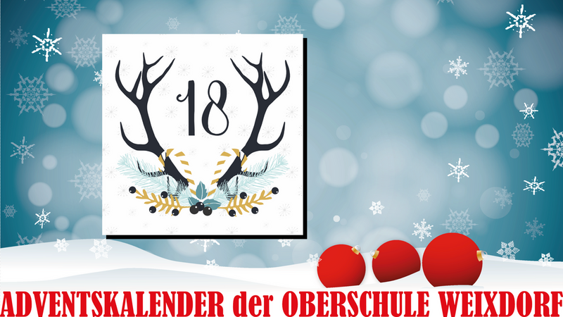 Wir öffnen das 18. Adventskalendertürchen. Heute das dritte und letzte Weihnachtsliedrätsel in Bildern. Viel Erfolg beim entschlüsseln. Kleiner Tipp - es ist ein englischer Klassiker von Chris Rea. Außerdem gibt es noch Bilder aus der Weihnachtsbäckerei und Weihnachtsbastelstube der Oberschule Weixdorf.
