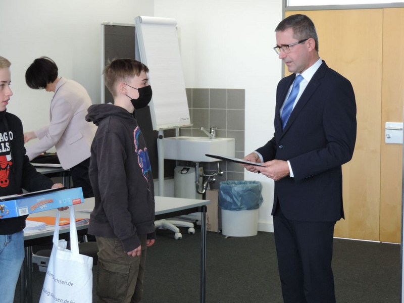Am 06.04.2022 fand der Endausscheid der 16. Sächsischen Geographie-Olympiade in der IHK Dresden statt. Insgesamt nahmen rund 13.000 Schülerinnen und Schüler der 7. und 10. Klassen der sächsischen Oberschulen an dem vierstufigen Wettbewerb teil. Am heutigen Mittwoch traten die besten 15 Schüler der jeweiligen Klassenstufe an und stellten sich den Aufgaben. Matti aus der Klasse 7b musste unter anderem das Klimadiagramm der malischen Hauptstadt Bamako auswerten, Gesteine bestimmen, sein topographisches Wissen über die Flüsse Europas unter Beweis stellen und im letzten Teil sein Allgemeinwissen. Hättet ihr zum Beispiel gewusst, wie das neue Weltraumteleskop, das am 25. Dezember 2021 ins All gestartet ist, heißt? Matti schon und so hat er bei „James Webb Space Weltraumteleskop“ sein Kreuz gesetzt und damit einen weiteren Punkt gesammelt.