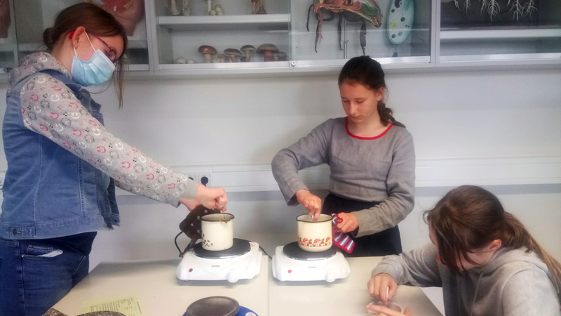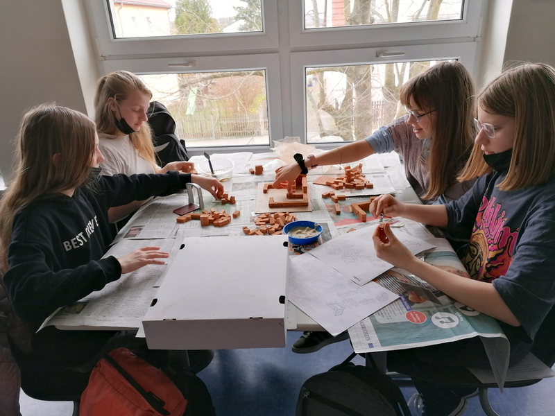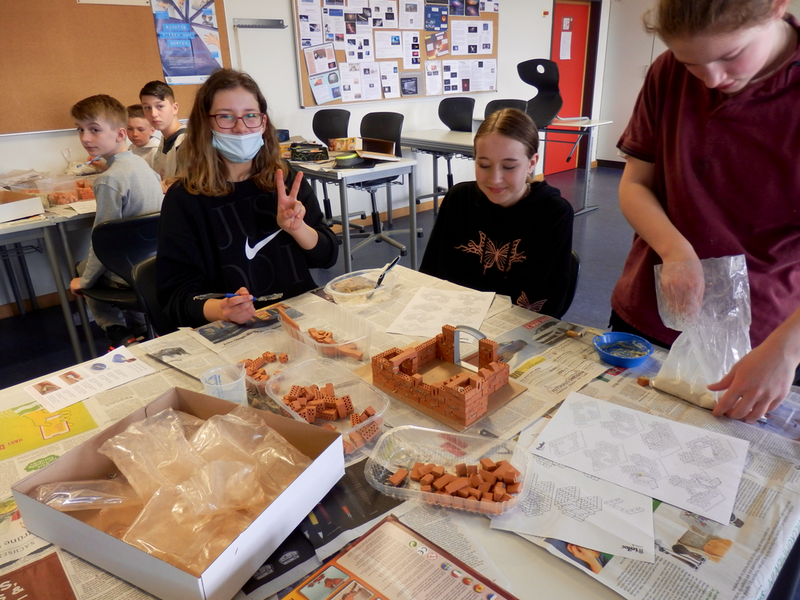 Am Donnerstag konnten sich die Schüler zwischen Medizin im Mittelalter und dem Waffenbau entscheiden. Im Themenbereich Medizin haben wir uns damit beschäftigt, wie man Krankheiten geheilt hat. Wir durften selbst einen Lippenpflegestift, Tee und Hustenbonbons herstellen. Im Waffenbau konnten wir zum Beispiel Schwerter aus Zaunlatten fertigen und diese farbig ansprühen. Im letzten Block des Tages bauten wir selbst Burgen aus Mörtel und Steinen.