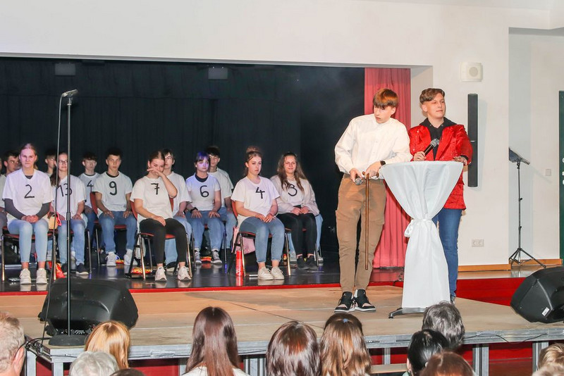 Zur Generalprobe endlich, konnten wir das Stück zum ersten Mal durchspielen und alles hat funktioniert! Die Premiere am 2.Mai konnte kommen. Womit nur keiner so wirklich gerechnet hat war, dass alle verfügbaren Stühle in die Aula gestellt werden mussten, um den Ansturm an Zuschauern zu bewältigen.