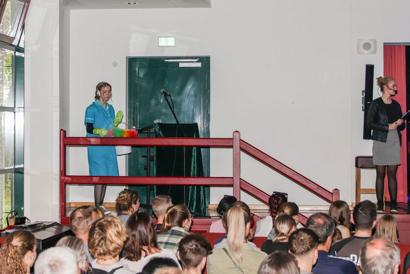 An dieser Stelle sei auch unbedingt erwähnt, dass unsere Techniker Tobias, Aaron und Nicolas jede freie Minute genutzt haben, damit pünktlich zur Premiere der Ton, das Licht, die Nebelmaschine und die Filmeinspielungen funktionieren.