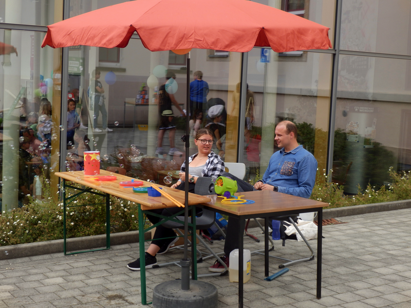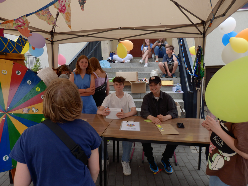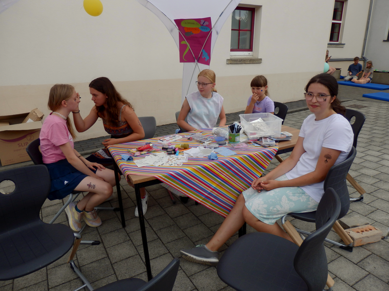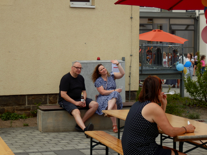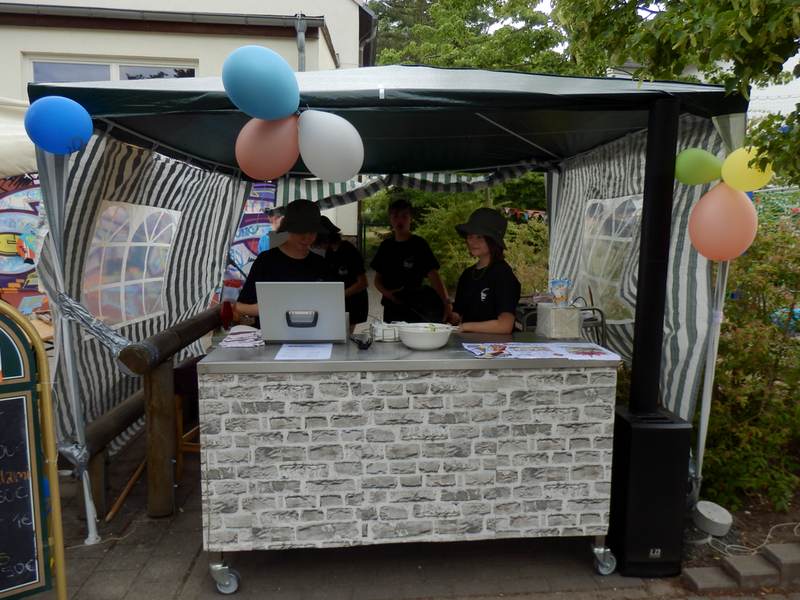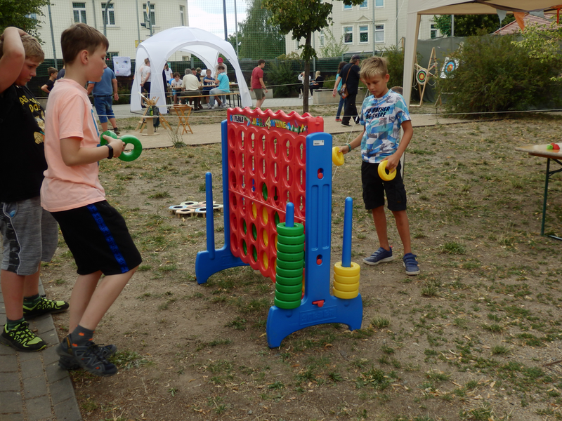 Am 13.07.2022 um 15:00 starteten wir bei nicht ganz so heißen Temperaturen. Das Motto des Schulfestes „Miteinander Reden - Spielen - Lachen” war von Anfang an auf dem gesamten Festgelände (unserem Schulhof) präsent.