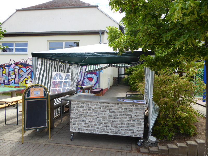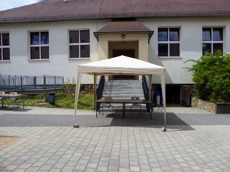 Am Vormittag war es noch still und ruhig auf dem Schulhof. Fleißige Hände bauten Zelte und Stände auf, stellten Getränke und Essen bereit und putzten unsere Schule für das Schulfest heraus.
