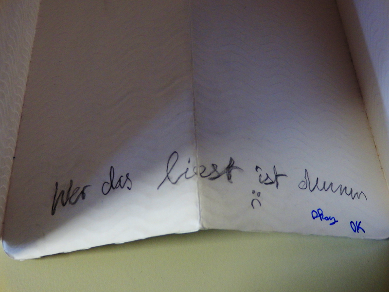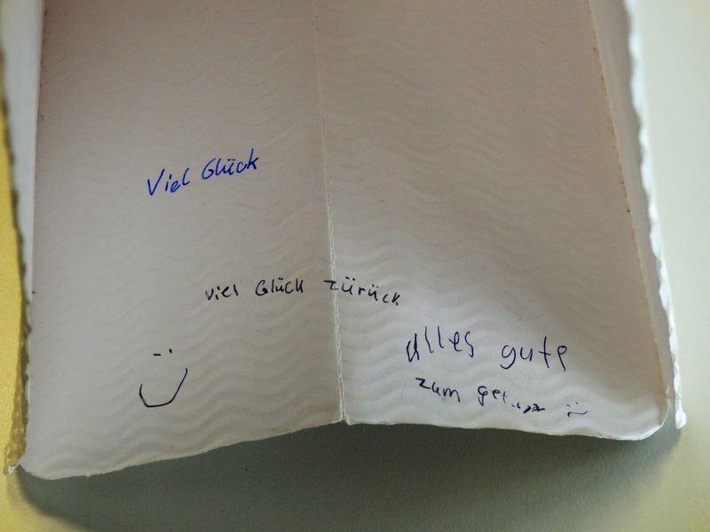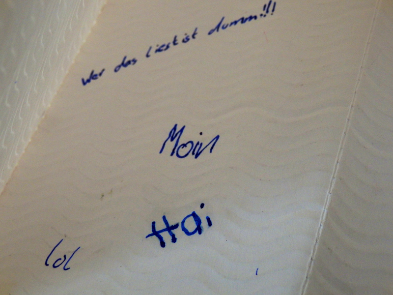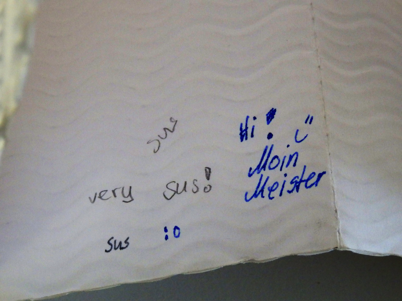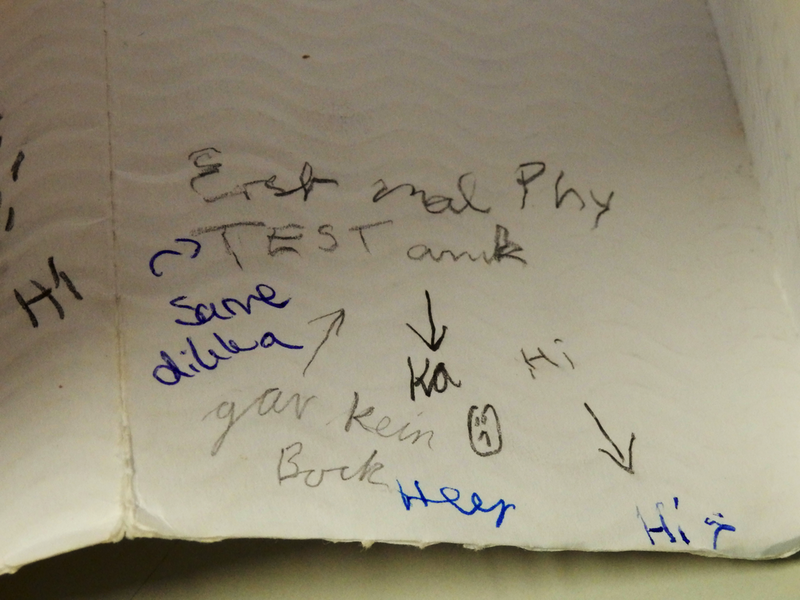 Interessant ist aber insbesondere der Inhalt. Auch hier sind die Spickerbarrieren eigentlich Blüten weiß. Doch häufig wird die Innenseite für kleine nette oder auch nicht so nette Botschaften der Schüler genutzt. Manchmal sehr aufschlussreich oder auch zum schmunzeln für uns Lehrer. Hier eine erste Auswahl solcher Nachrichten:
