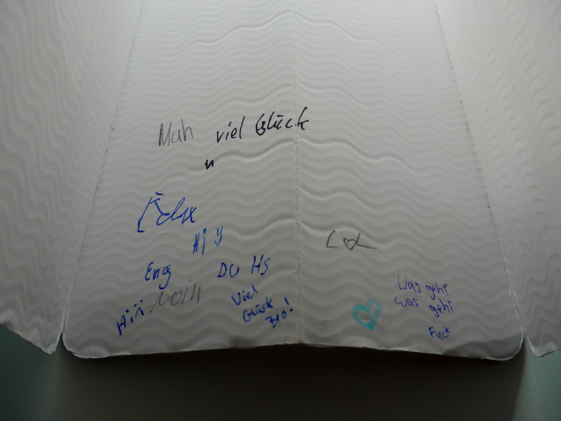 Eigentlich sind sie weiß oder vom Hersteller eingefärbt. Aber es gibt auch Schüler, die während einer Arbeit eher Kunst im Kopf haben als den Inhalt der Leistungskontrolle. Und so erhalten sie langsam auch Außen ein Muster oder anderer Verzierungen.