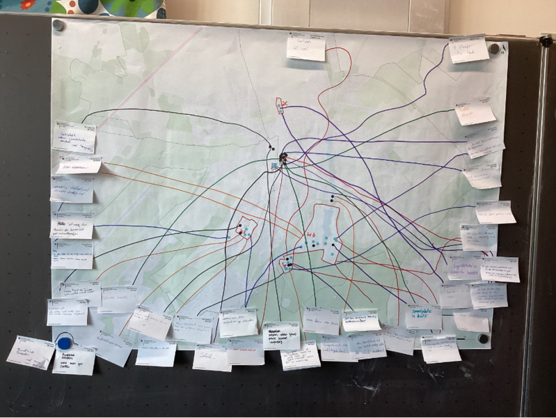 Wir versammelten uns in unserem Klassenzimmer und wurden gebeten, unsere Lieblingsorte, wie zum Beispiel das Kaufland, oder Orte wo wir nicht so gerne sind, wie zum Beispiel der Dixi Bahnhof, auf einer Landkarte von Weixdorf zu markieren. Wir konnten auch Orte außerhalb von Weixdorf auswählen. Dies war aber nur eine Vorübung, die unsere Kreativität anregen sollte.