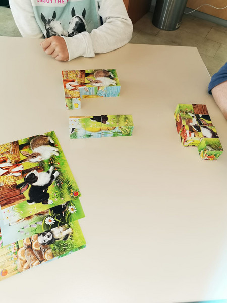Am Anfang haben wir uns auf dem Hof versammelt und gefrühstückt dann haben wir die Bewohner und die Mitarbeiter kenngelernt. Die beiden Häuser für Ältere und Jüngere Leute wurden uns vorgestellt. Später haben wir uns in zwei Gruppen aufgeteilt, eine Gruppe hat mit den Bewohnern für das Maifest gebastelt und die andere Gruppe hat mit den Bewohnern verschiedene Spiele gespielt. Am Anfang war es etwas komisch mit den Bewohnern zu spielen, aber mit der Zeit haben wir uns daran gewöhnt und wir hatten sehr viel Spaß.