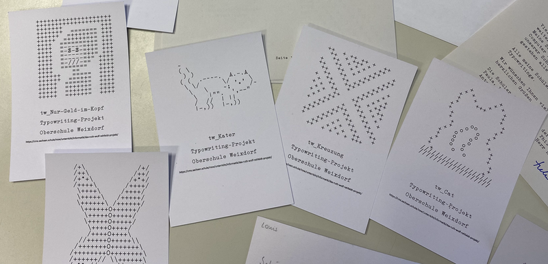 Mit einer Mail-Art-Postkarten-Aktion haben die Schüler der Klasse 7a (Informatikgruppe 2) das Ruth Wolf-Rehfeldt-Projekt abgeschlossen. Dabei druckten wir unserer Typowritings auf Postkarten.