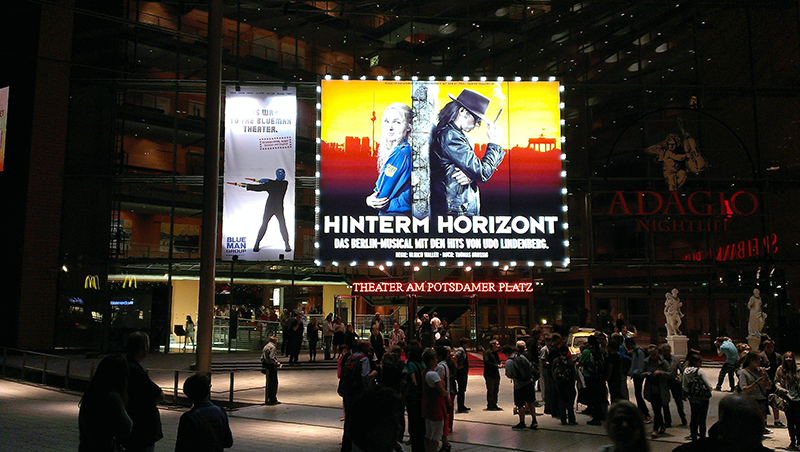 Wir fuhren 14:30 los um uns in Berlin das Musical 'Hinterm Horizont' anzusehen. Alle die mitfahren wollten, durften eher gehen, um sich schick machen zu können. Man fährt ja nicht jeden Tag nach Berlin. Der Bus biegt auf die Autobahn nach Berlin ab. Es ging los, ca. 3 Stunden Fahrt lagen vor uns und alle waren aufgeregt. Die Aufregung stieg, als dann endlich die Karten verteilt wurden. In Berlin angekommen, gönnten sich alle erstmal etwas zu essen und danach, nach 1 Stunde Freizeit, ging es ins Theater rein. Sofort wurden uns unsere Plätze zugewiesen.