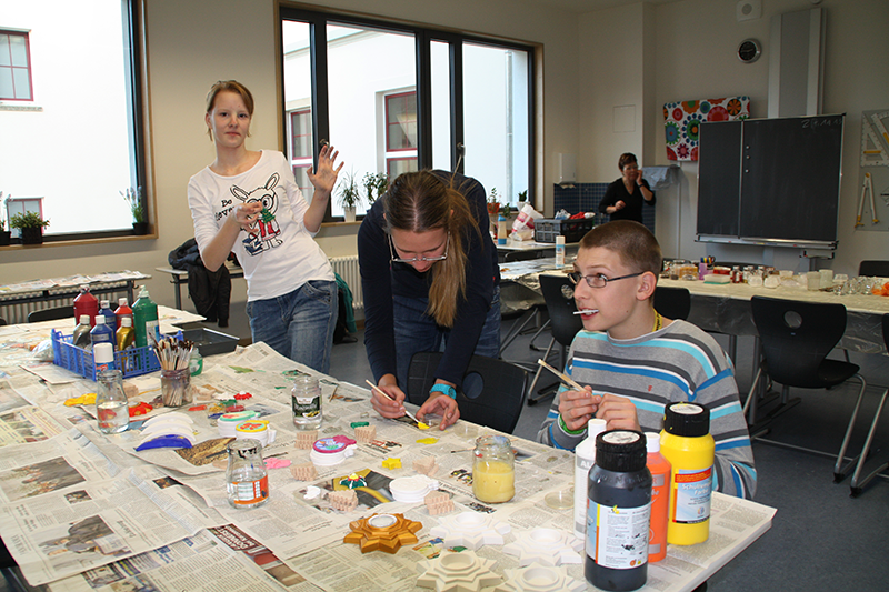 Es wurde fleißig gebastelt, Weihnachtsgestecke, Sterne und kleine Geschenke.