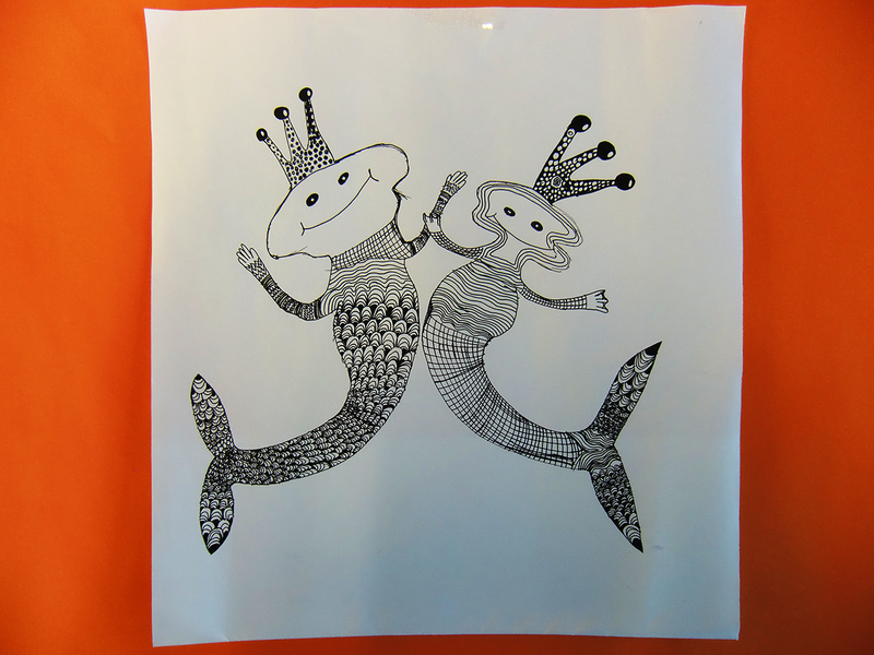 Nach und nach wuchsen mit Filzstift, Bleistift und Papierwischer fantastische Wesen.