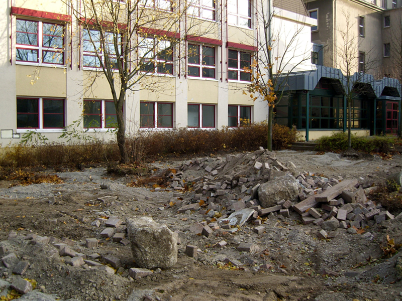 Die ersten Bagger sind schon da und das alte Hausmeisterhaus ist schon abgerissen und macht Platz für den Neubau.