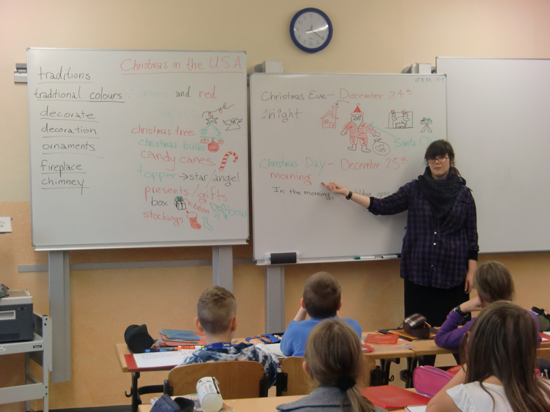 In einer vorweihnachtlichen Englischstunde am 07.Dezember war die amerikanische Studentin Angela Di Giacomo (von unserer Partneruniversität Kent State Ohio) zu Gast ...