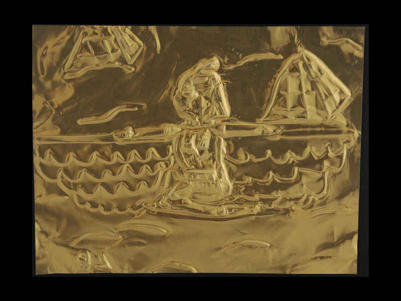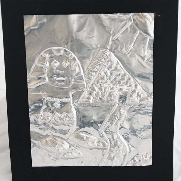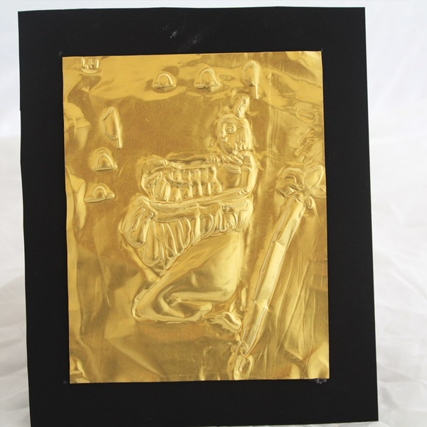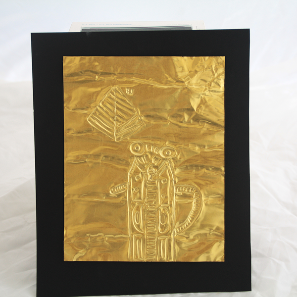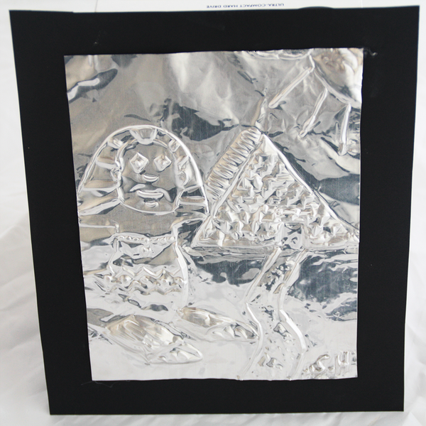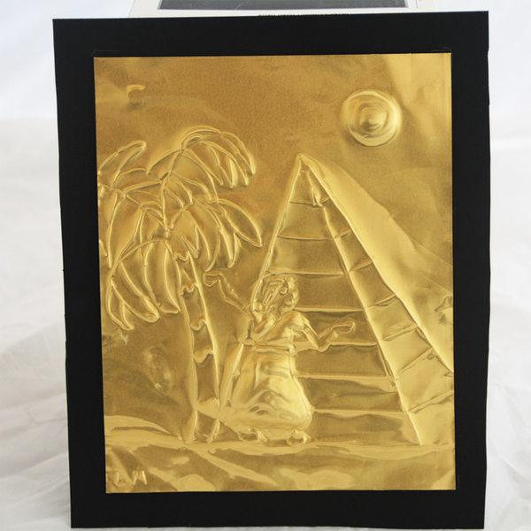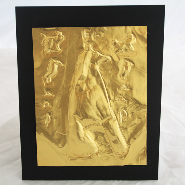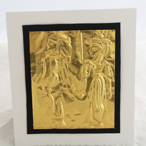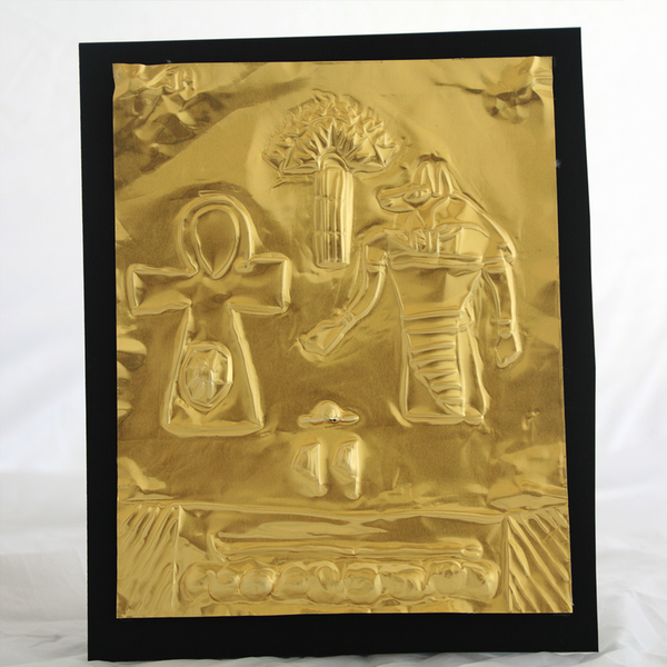 Die TUT-Ausstellung ist längst vorüber, aber bei uns kann man immer noch ägyptische Kunst bewundern. Die Schüler der Klassen 5b und 5c fertigten aus dünnen Metallplatten Reliefs nach ägyptischen Motiven. Die erste Schwierigkeit bestand darin, dass auf dem Metall keine Vorzeichnung möglich war und frei nach einer auf Papier gezeichneten Vorlage gearbeitet werden musste. Als Zweites mussten alle Formen von der Rückseite eingedrückt werden. Korrekturen von einmal verformter Metallfolie sind nicht möglich.