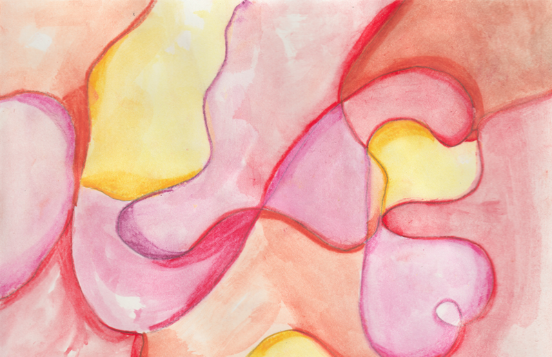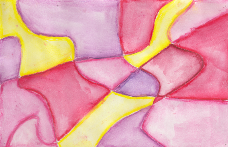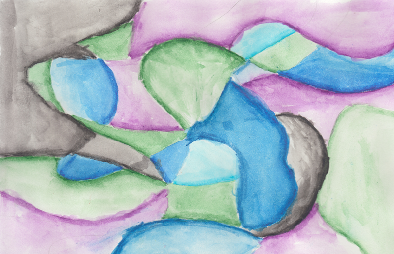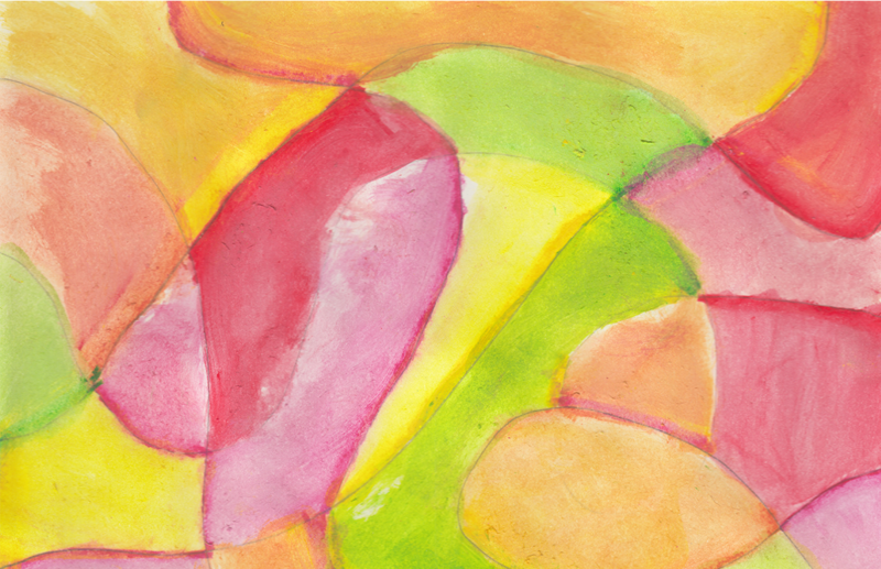Passend zum Thema „Feuer und Eis“ gestalteten die Klassen 5a und 5b kleine Aquarelle mit warmen oder kalten Farbtönen. Diese Technik war für die meisten Schüler neu. Sie ermöglicht besonders leuchtende Farben. Dazu ist es jedoch notwendig, ein gutes Gefühl für das richtige Verhältnis von Farbmenge und Wasser zu entwickeln. Die hier gezeigten Studien in A5-Größe entstanden bereits in der zweiten Unterrichtseinheit.