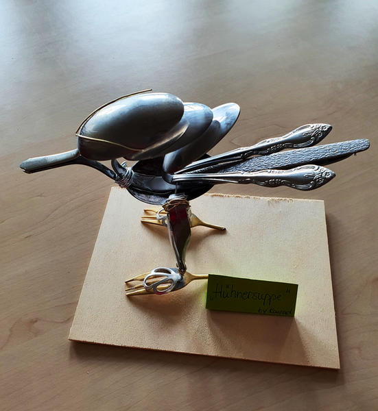 Ein neues Schuljahr, ein neuer Kunstkurs und natürlich eine neue Kreativaufgabe. Dieses Jahr stand den Schülern altes Besteck zur Verfügung. Aber was damit anfangen? Es wurde getüftelt, skizziert, gebogen, gesägt und irgendwie das Material auch zusammengefügt. Echt keine leichte Aufgabe. Aber es hat funktioniert und am Ende sind wirklich beeindruckende Kunstobjekte entstanden. Ich bin stolz auf euch und eure Kreativität.