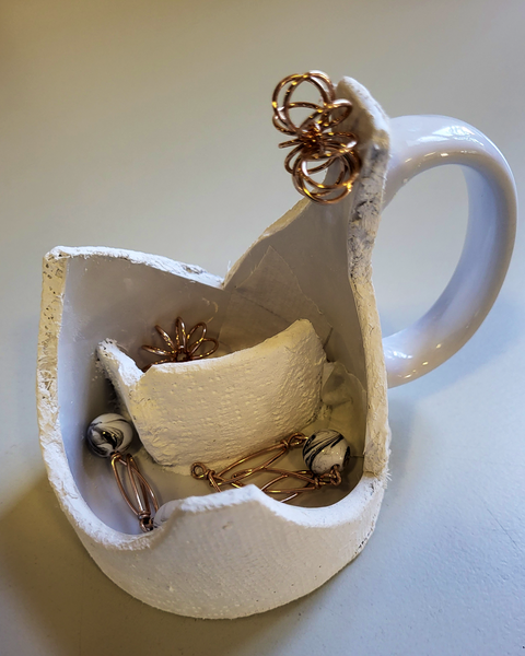 Auch in diesem Jahr durften die 10. Klassen im Kunstkurs mit einem Kreativprojekt starten. Zur Wahl standen Kaffeetassen, Reißverschluss und Knöpfe und beim 3. Kurs „Krempel“. Die Technik war frei wählbar ebenso, ob auf der Fläche oder als Objekt gearbeitet werden wollte. Mit Kleber, Farbe, Nadel + Faden und vielen weiteren Dingen entstanden zauberhafte Kunstwerke, die von viel Kreativität zeugen. Schauen Sie selbst…