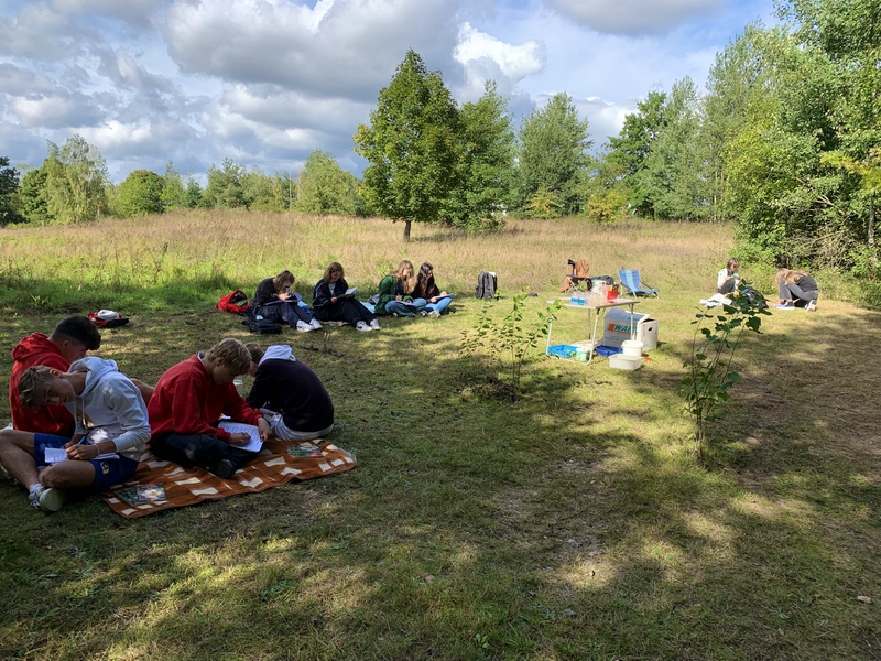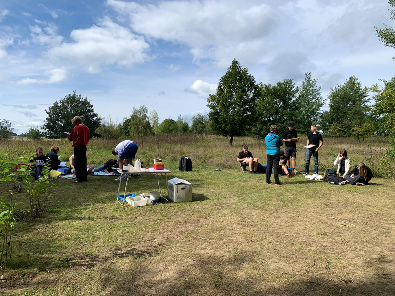 Am 19.09. 2023 hatte die Klasse 9b im 2. und 3. Block das Gewässer Praktikum am Regenrückhaltebecken am Promigberg.
