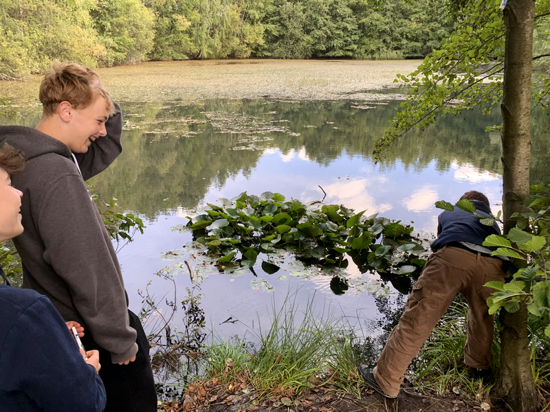 Wir haben Wasserproben entnommen, um die Lebewesen im Wasser zu untersuchen, den PH-Wert zu messen, ebenso die Temperatur. Wir waren sehr erstaunt einen Koi dort zu finden den jemand da ausgesetzt hat. Außerdem haben wir Blässhühner gesehen die auf dem See schwammen. Am Besten war, als wir die Wasserproben mit Lupen beobachtet haben. Darin waren kleine Wasserflöhe. Es gab auch sehr viele Pflanzen z.B. Seerosen. Ich fand es interessant und es hat Spaß gemacht. Am Ende wurde das Arbeitsblatt, wo wir unsere Beobachtungen aufgeschrieben haben, eingesammelt und benotet.