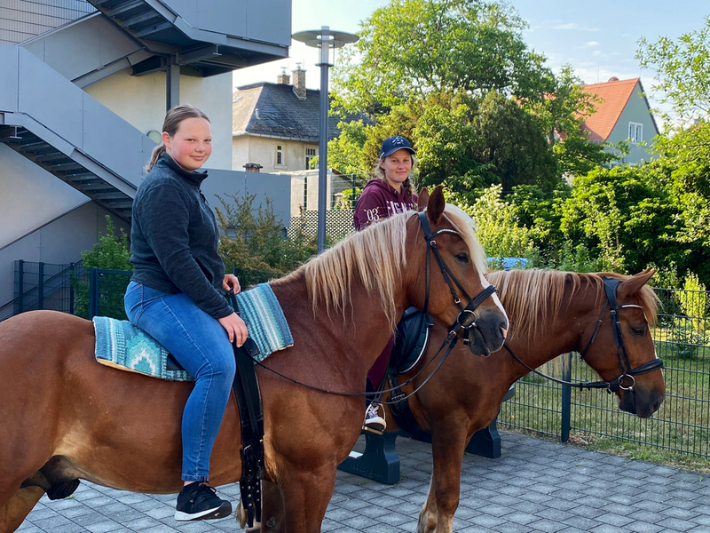 ... so war es an der Oberschule Weixdorf als die Klasse 5 b ihren Haustiertag hatte. Tatsächlich waren dieses Schuljahr zwei Pferde auf dem Schulhof. Verrückt!