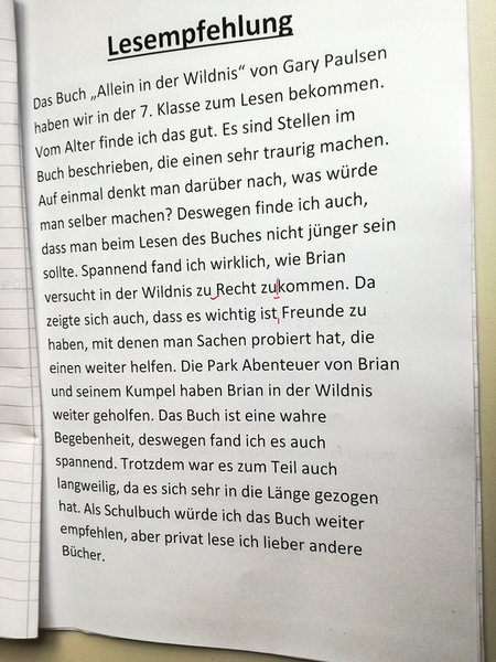 Die Schüler der 7. Klasse lasen das Buch "Allein in der Wildnis" von Gary Paulsen.