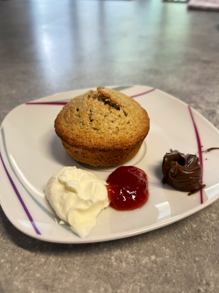 After your scones are done baking, you can eat them the British way with a little clotted cream and jam on top!