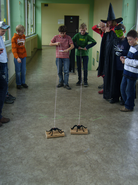 An verschiedenen Stationen wurden Quizfragen gelöst, um die Wette Spinnenfäden aufgewickelt und mit einigen Musikinstrumenten ein Halloween Rap eingeübt.