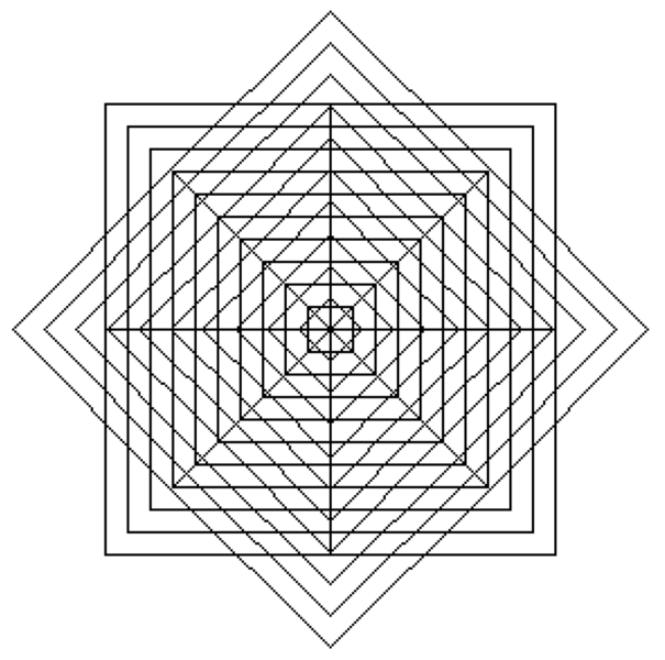 Die Fehler haben wir mehr oder weniger schnell gefunden, meist wurde nur eine Klammer falsch gesetzt oder eine Linksdrehung anstatt einer Rechtsdrehung vollführt. Nachdem der Fehler ausgebessert war, ging es an die die Anfertigung der nächsten Grafik.