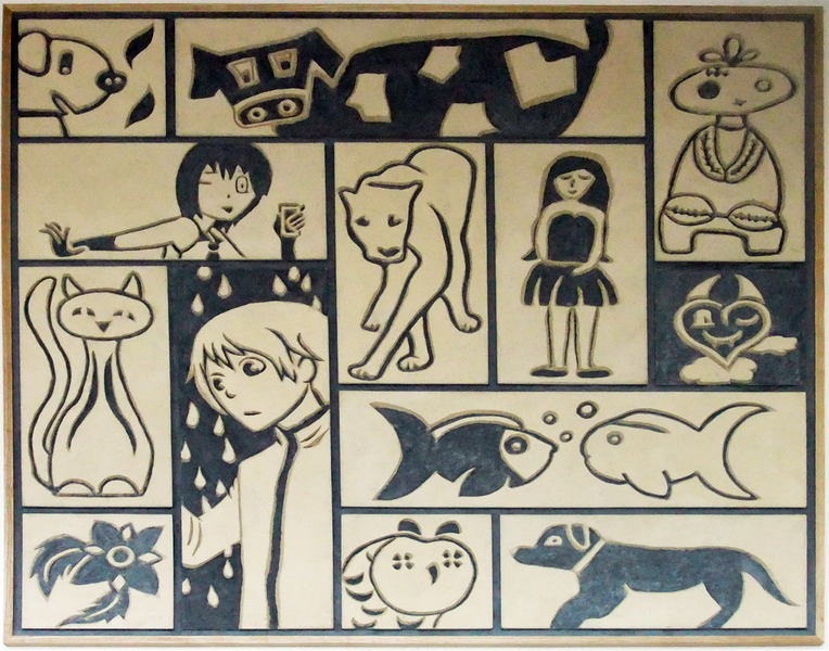 Eine der vielfältigen Ideen bestand darin, den Schülern die historische Handwerkstechnik des Putzschnittes näher zu bringen und ein großflächiges Wandbild im Eingangsbereich zu schaffen.