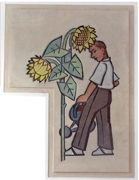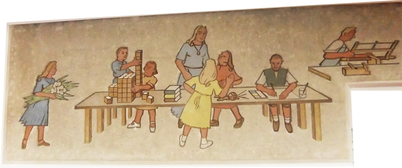Vorstellen der Putzschnitt-Technik für interessierte Schüler durch Herrn Gasch