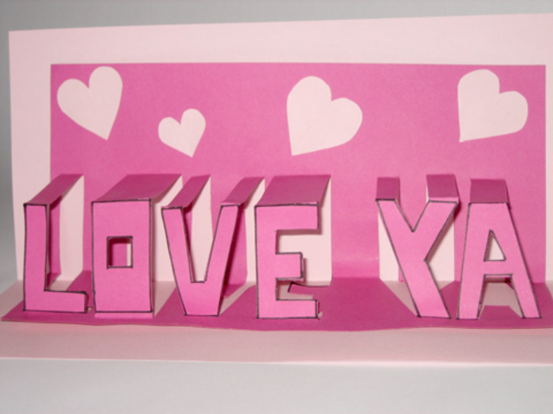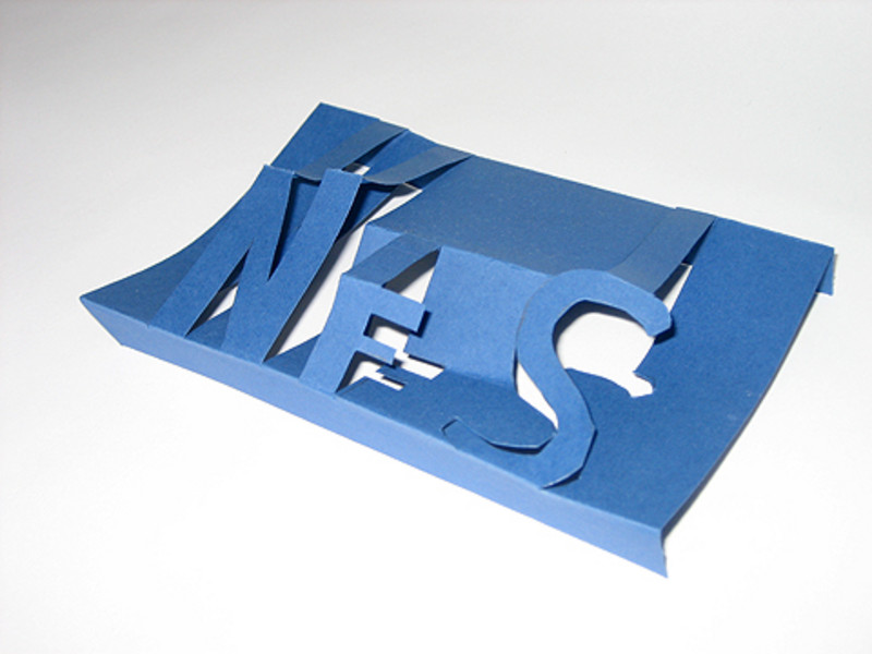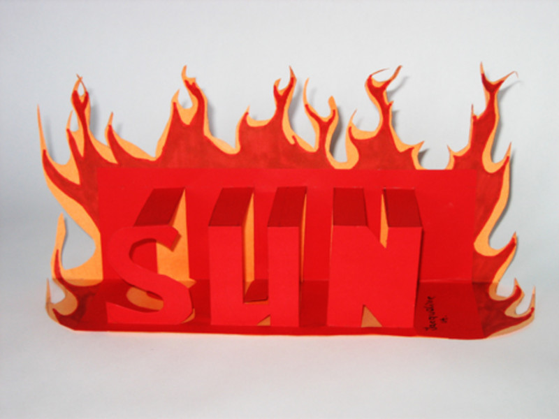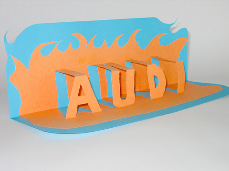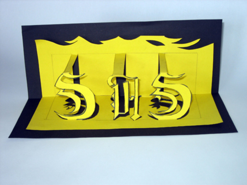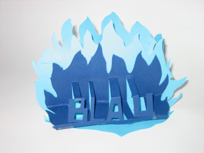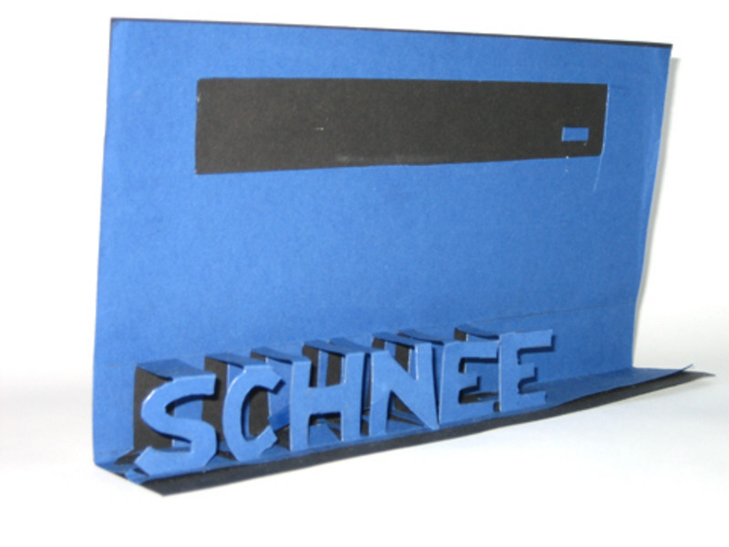 Nach einigen Übungen mit zerrissenen und zerschnittenen Endprodukten gelang es den meisten. Ein selbstentworfener Werbeschriftzug ließ sich mit Hilfe von Berg- und Talfaltung von der Fläche in den Raum hinein zaubern. Gutes Vorstellungsvermögen, Geduld, Fingerspitzengefühl sowie exaktes Zeichnen und Scheiden waren notwendig.