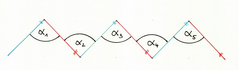 Alle Rumpelkammerwinkel an einer paarweisen parallelen Zick-Zack-Linie sind stets gleich groß.