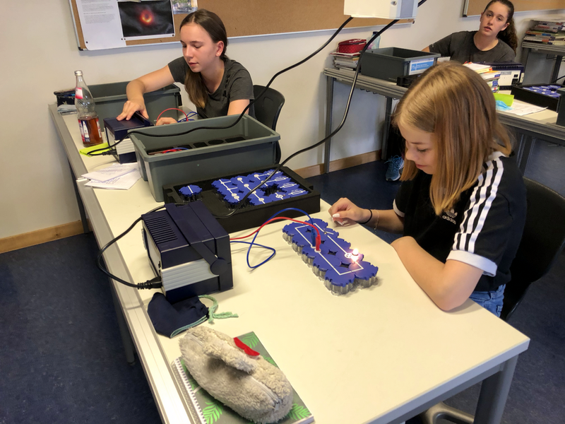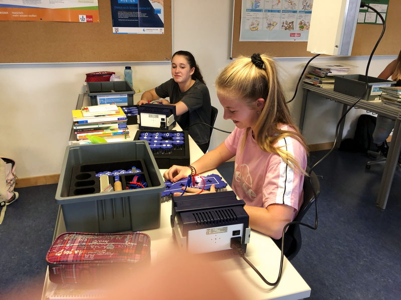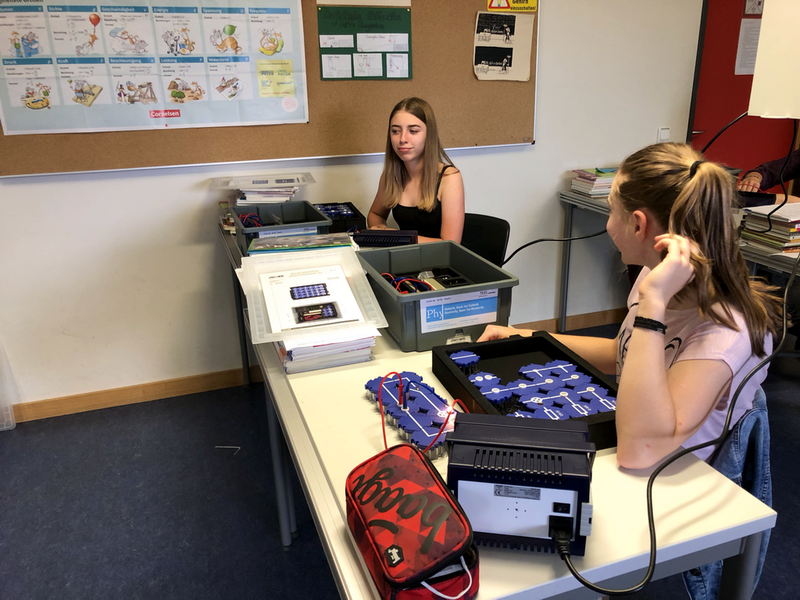 Am Mittwoch, dem 15.07.2020, war es dann soweit. Die Mädchen der 9a und der Physiklehrer packten die neuen Schülerexperimentiermittel aus. Neue Stromversorgungsgeräte, einen Grundbausatz und ein Ergänzungssatz für jedes Experimentierteam sind nun für die Schule nutzbar. Alles wurde natürlich gleich mal ausprobiert. Und Marie rief gleich beim Aufbau der ersten Schaltung: „Das ist ja viel einfacher …”. Na mal sehen …